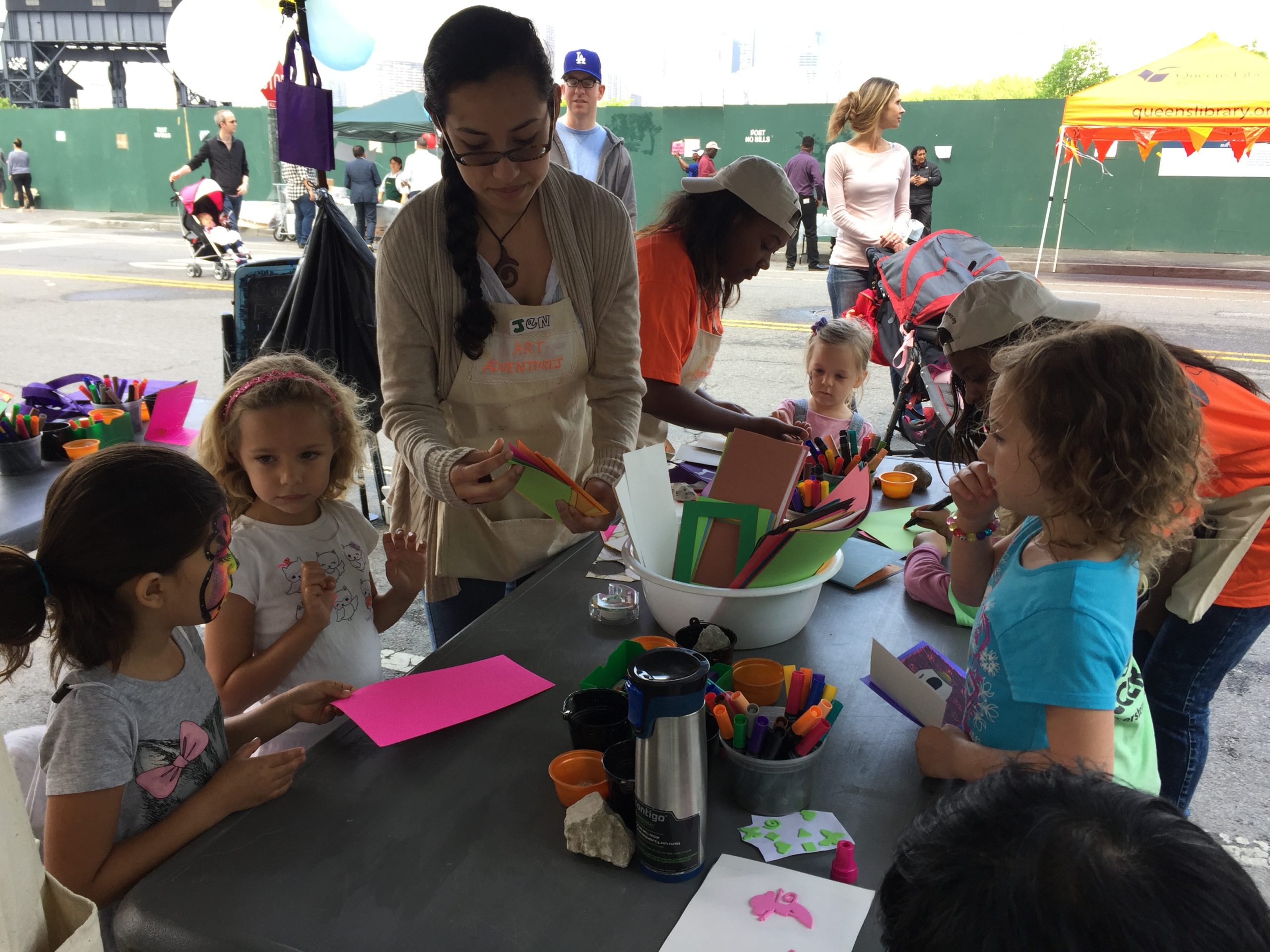 A few weeks ago Claire’s Creative Adventures took part in the groundbreaking ceremony carnival for the Hunter’s Point Library in Long Island City. In celebration of this occasion we made pop-up cards and accordion books! This bookmaking style has rich global history with origins all throughout Asia. Check out all the great cards and books made by the children! Even parents joined in!